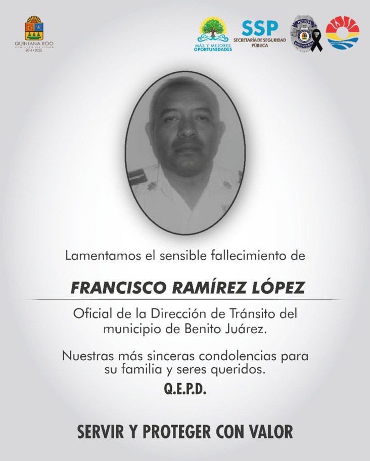 Un agente de la dirección de Tránsito de Cancún perdió la vida este sábado.