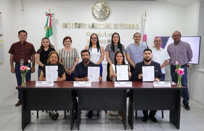 La firma estuvo a cargo del Maestro Sergio Bernal Rojas, Vocal Ejecutivo del INE en Quintana Roo; de la consejera presidenta, Rubí Pacheco Pérez, del Instituto Electoral de Quintana Roo (IEQROO); y de la Secretaria Ejecutiva, Guadalupe Esquivel Monroy, también del Instituto Electoral de Quintana Roo.