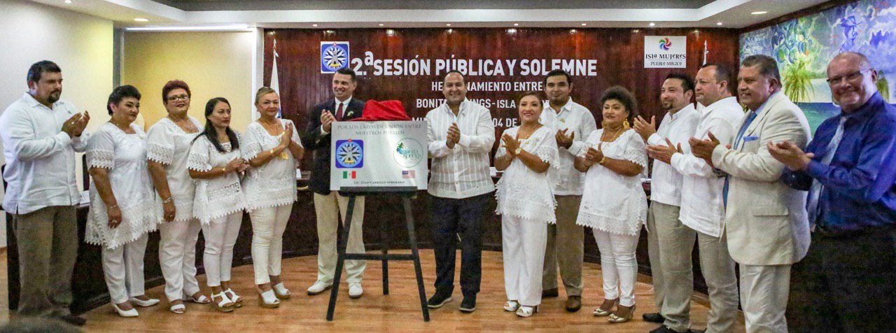 Después de un año de trabajo colaborativo entre los gobiernos de Isla Mujeres y Bonita Springs, Florida, Estados Unidos, el presidente municipal isleño, Juan Carrillo Soberanis, dio a conocer que se formalizó su unión mediante la firma de hermanamiento entre ambos destinos.