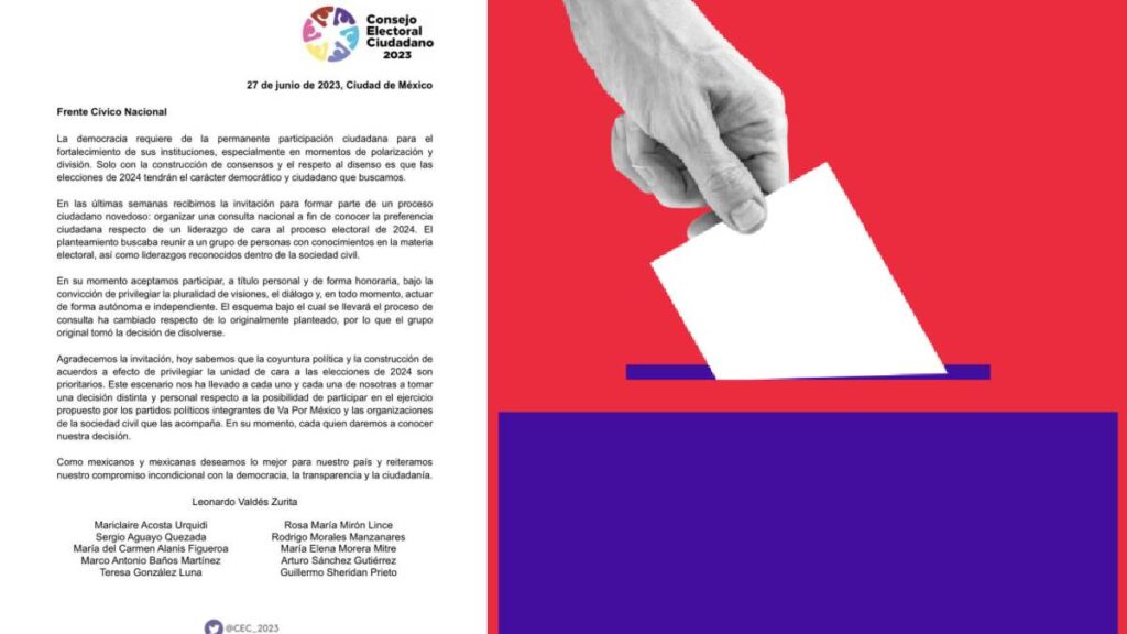 El Frente Cívico Nacional disolvió el Consejo Electoral Ciudadano que había conformado para llevar a cabo las primarias del proceso de selección del candidato presidencial de la alianza Va por México, que contenderá como el Frente Amplio por México.