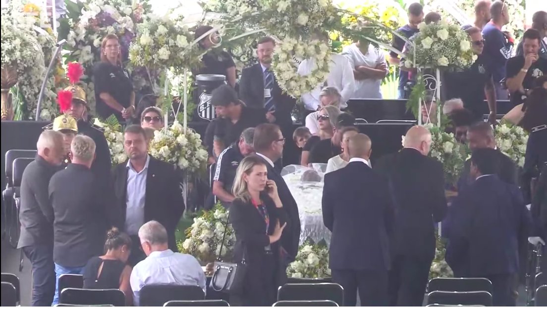 Con el paso de las horas el cuerpo de Pelé fue cubierto con las banderas de Brasil y del Santos, equipo con el que pasó la mayor parte de su carrera y con el que consiguió diez títulos del Campeonato Paulista (1958, 1960, 1961, 1962, 1964, 1965, 1967, 1968, 1969 y 1973), seis de Serie A (1961, 1962, 1964, 1964, 1965 y 1968), dos de Copa Libertadores (1962 y 1963) y dos de la Copa Intercontinental (1962 y 1963), entre otros.