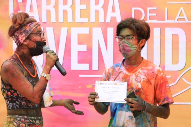 Por su parte, la encargada de despacho del Instituto Municipal del Deporte, Alejandra Hernández González, informó como parte de las acciones del gobierno a favor de los jóvenes, se realizó la Carrera de la Juventud, que tuvo como punto de partida el estacionamiento del Centro Maya, para finalizar en Ciudad Juventud, lugar donde se entregaron premios sorpresa y reconocimientos a los participantes de esta fusta deportiva.