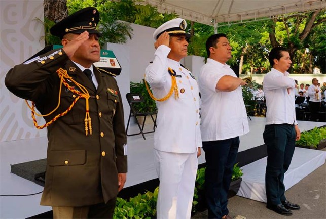 A la ceremonia cívica también asistieron Oscar Luis Dzib Cocom, Secretario General del Ayuntamiento de Othón P. Blanco; el Inspector General Jorge Manuel Ballona Contreras, Comandante del 46/ Batallón de Guardia Nacional; el capitán de navío C.G. D.E.M. Juan Carlos Salas Salgado, en representación de los comandantes de la Novena Región Naval y Décimo Séptima Zona Naval; Lirio Calderón González, Secretaria General del Poder Legislativo; Marilu Gissel Román Espadas, Directora del Archivo Judicial, en representación del Tribunal Superior de Justicia e invitados.