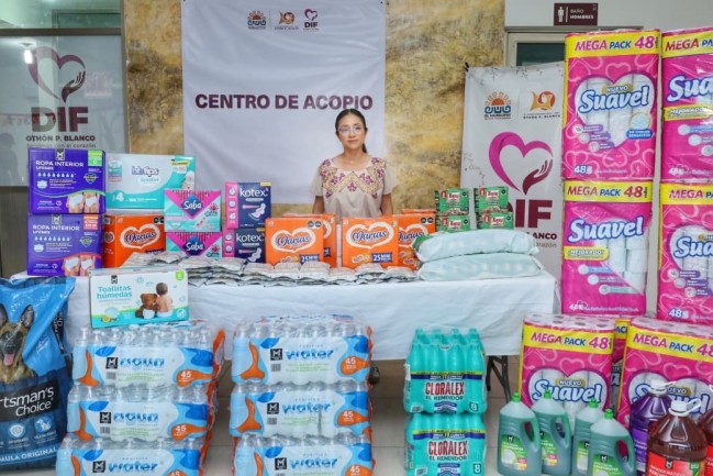 La presidenta municipal de Othón P. Blanco, Yensunni Martínez Hernández, se sumó al llamado de la gobernadora de Quintana Roo, Mara Lezama Espinosa, para apoyar con la donación de víveres y artículos de primera necesidad a las personas damnificadas por las lluvias e inundaciones en Veracruz, Hidalgo, Puebla, Querétaro y San Luis Potosí.