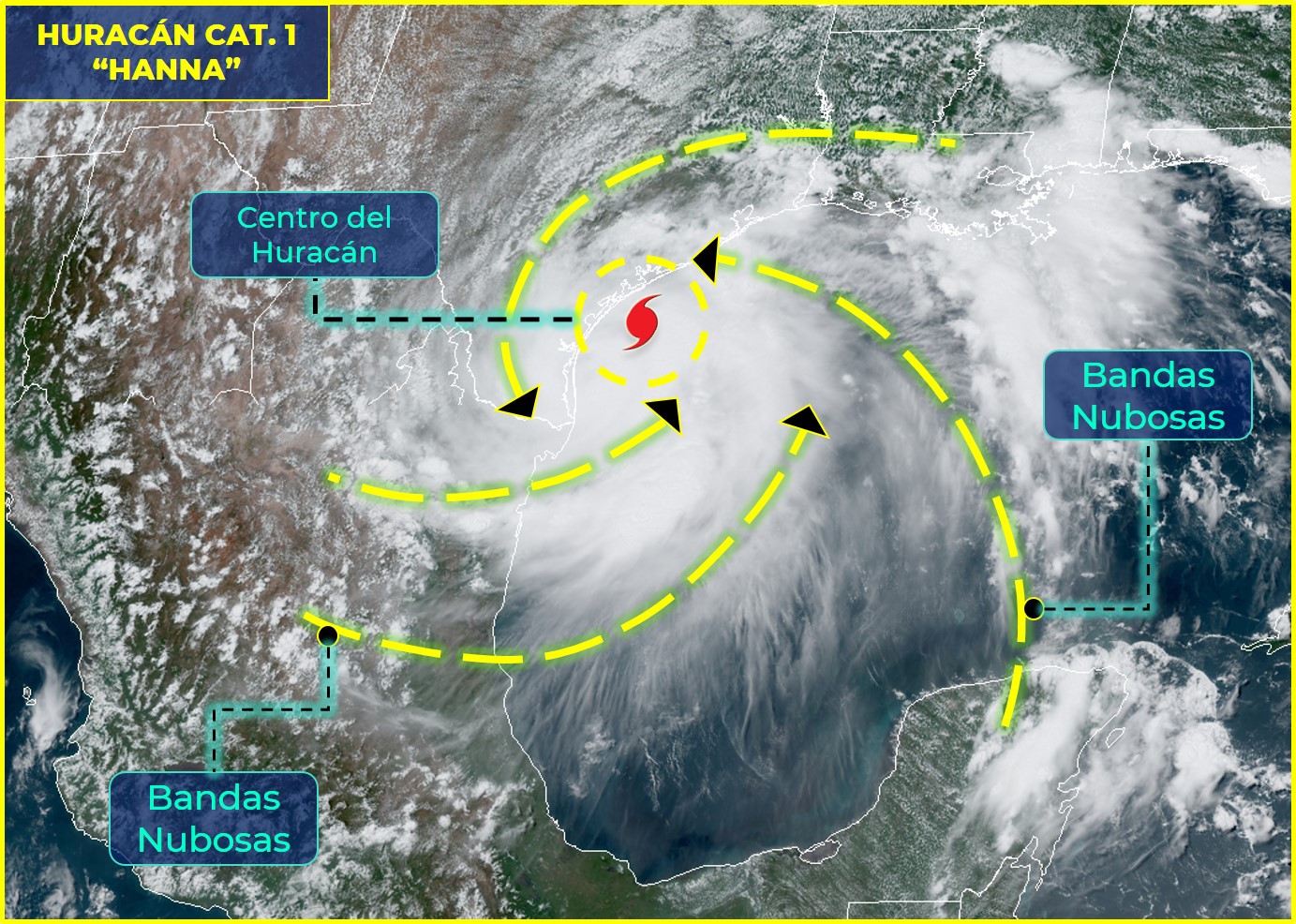 Hanna amenaza con vientos, fuertes lluvias con acumulaciones de hasta 12 pulgadas (unos 30 centímetros) y las consecuentes inundaciones en Texas, y también en los estados mexicanos de Coahuila, Nuevo León y Tamaulipas.