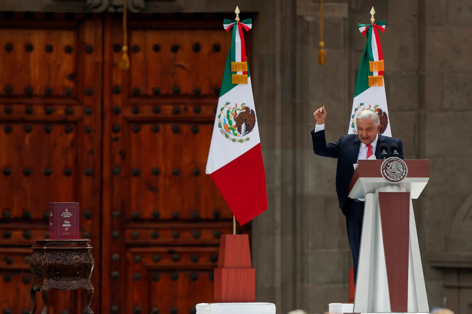 La ceremonia del sexto informe de gobierno de López Obrador tuvo lugar el 1 de septiembre en el Zócalo de la Ciudad de México.
