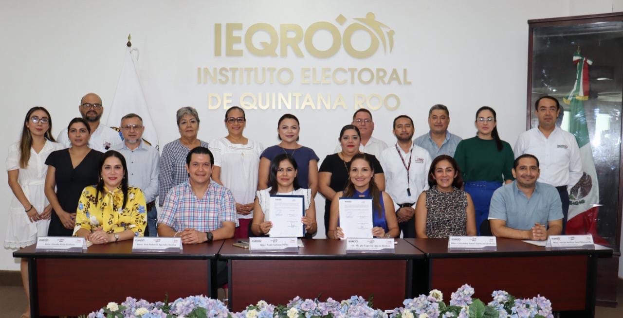 La firma se realizó ante los Comisionados del IDAIPQROO, Roberto Agundis Yerena y Claudette González Arellano; los Consejeros Electorales Adrián Amilcar Sauri Manzanilla y Claudia Ávila Graham; así como demás personas servidoras públicas de ambas Instituciones.