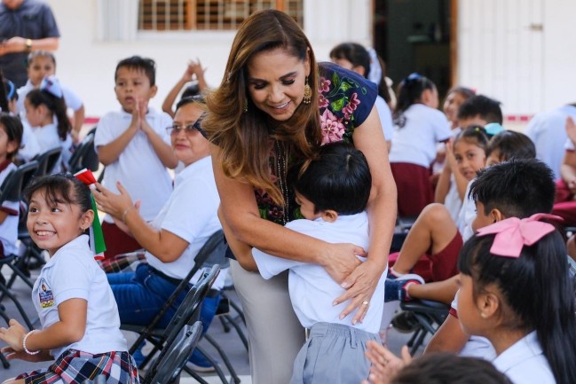 Acompañada de alumnas y alumnos, padres de familias, maestras y maestros, en un ambiente festivo, la gobernadora Mara Lezama Espinosa inauguró el nuevo domo de la escuela primaria “Artículo Tercero Constitucional” del fraccionamiento Galaxia 1, como parte del programa estatal de construcción de 1,109 instalaciones de este tipo en todo Quintana Roo.