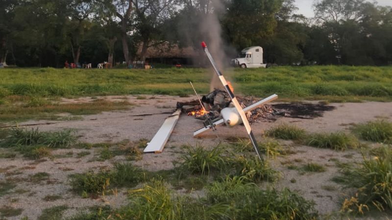 Estos hechos fueron confirmados por la Fiscalía general del estado, que indicó que según los primeros indicios, el helicóptero no cayó ni fue derribado, sino que fue incendiado en el sitio donde se encontraba estacionado.