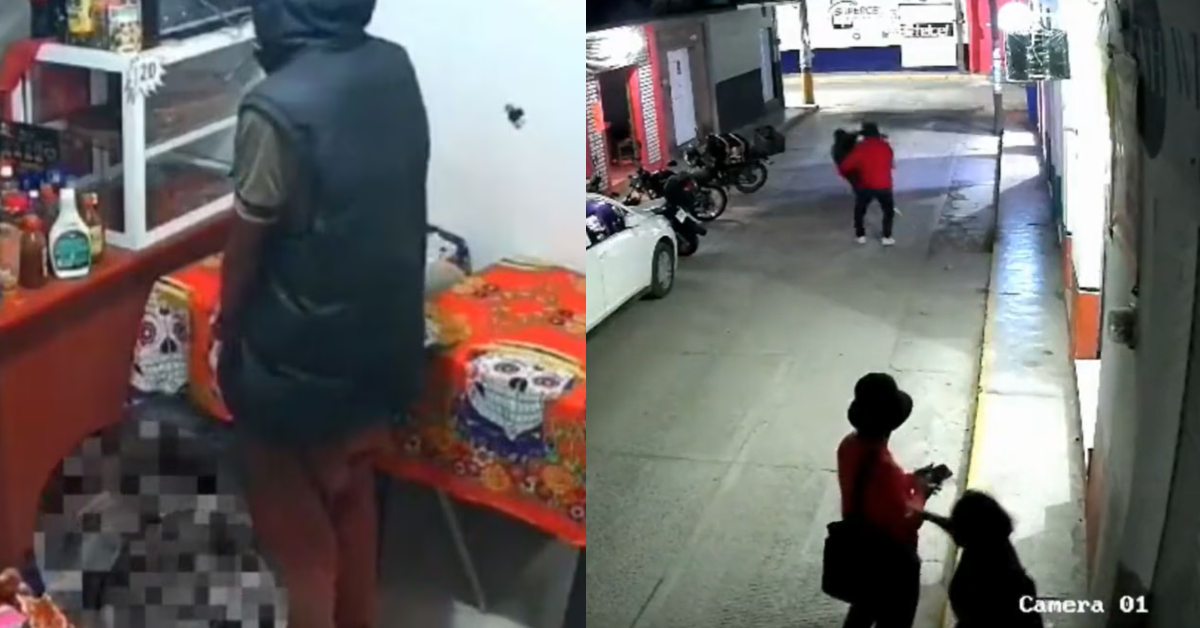 Una cámara de seguridad capturó un incidente impactante en el que un hombre en situación de calle agredió a un niño en la cabeza en una pizzería en Miahuatlán, Oaxaca. El video muestra el momento en que el agresor, claramente desequilibrado, entra al establecimiento y golpea al niño que estaba sentado en el lugar. El padre del menor reaccionó inmediatamente y confrontó al agresor.