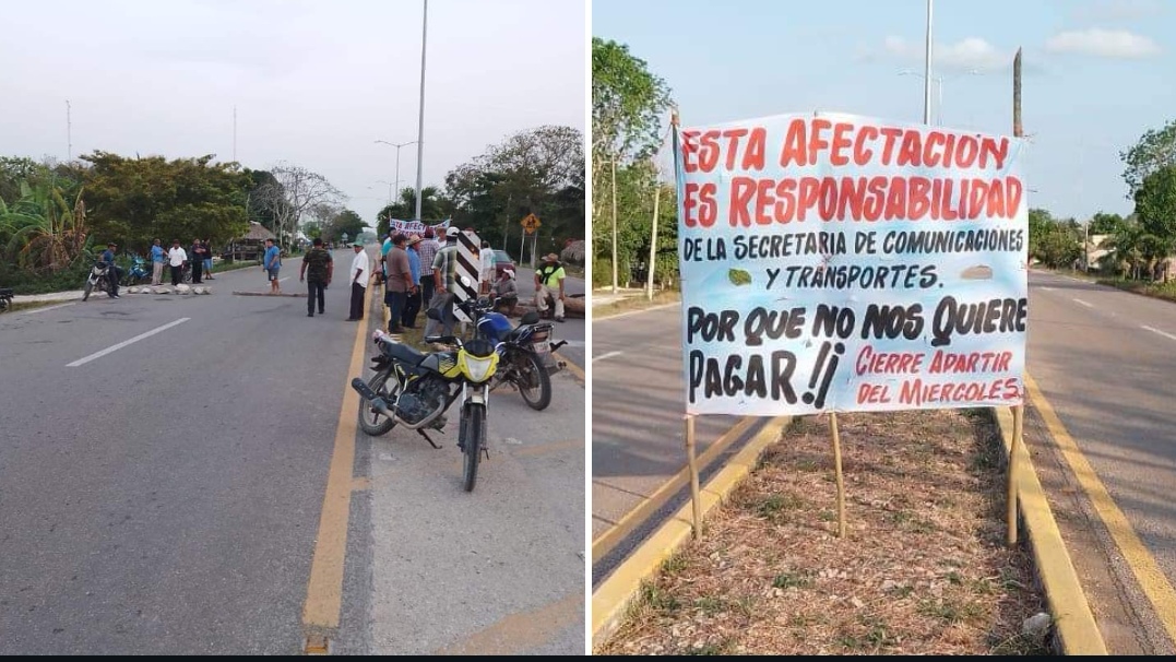 El bloqueo es para exigir a la Secretaría de Infraestructura, Comunicaciones y Transportes (SICT) el pago por la expropiación de 24 hectáreas que se utilizaron para la construcción de la Vía Corta a Mérida, deuda que está pendiente desde hace más de 60 años.