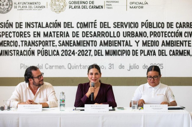 “Queremos un Ayuntamiento eficiente, transparente y, lo más importante, cercano a la gente, con servidoras y servidores públicos capacitados, con vocación de servicio y con profundo amor por Playa del Carmen”, expresó la presidenta municipal Estefanía Mercado. al encabezar la toma de protesta e instalación del Comité del Servicio Público de Carrera para Inspectores Municipales, en el Salón Oval del Nuevo Palacio Municipal.