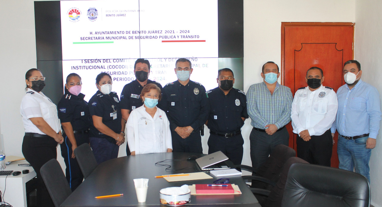 Dicho Comité se encuentra conformado por el Secretario Municipal de Seguridad Pública y Tránsito, Rubén Oyarvide Pedrero, así como de directores y jefes de departamento de las unidades administrativas fundamentales de la corporación, así como de la C. Reyna Valdivia Arceo, Contralora Municipal de Benito Juárez.