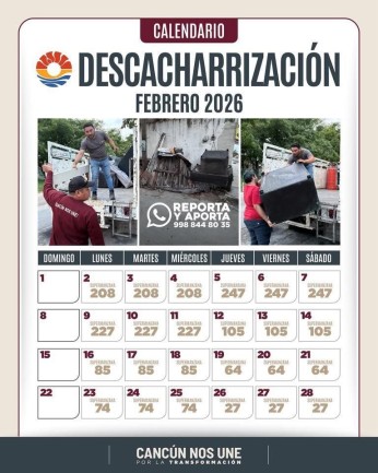 Cancún, Q. R., a 20 de febrero de 2026.- Autoridades del Ayuntamiento de Benito Juárez, a través de la Dirección General de Servicios Públicos Municipales, invitaron a la ciudadanía a participar en el Programa permanente de Descacharrización, con el objetivo de eliminar los enseres domésticos y otros residuos de las calles, para mitigar posibles criaderos de mosquitos, así como crear conciencia en los vecinos de que deben mantener limpios los patios, techos y frentes de sus hogares.