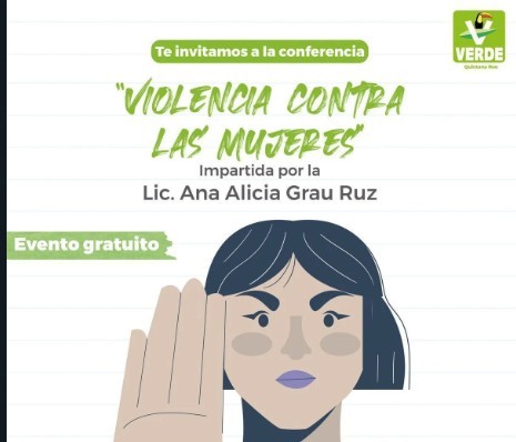 La dirigencia estatal del Partido Verde que encabeza Renán Sánchez, abre la invitación al público en general a la conferencia “Violencia contra las Mujeres” que será impartida por la Psicóloga Ana Alicia Grau Ruz, el próximo 5 de diciembre en el hotel Grand Merino de esta ciudad.