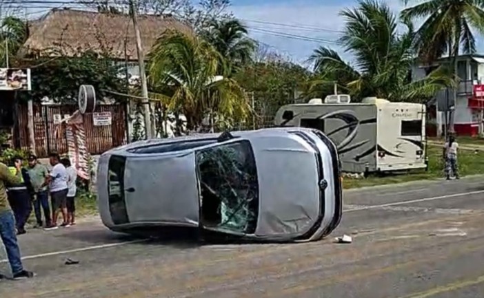 La mañana de este miércoles se registró la volcadura de un vehículo particular en la carretera federal Bacalar-Felipe Carrillo Puerto.