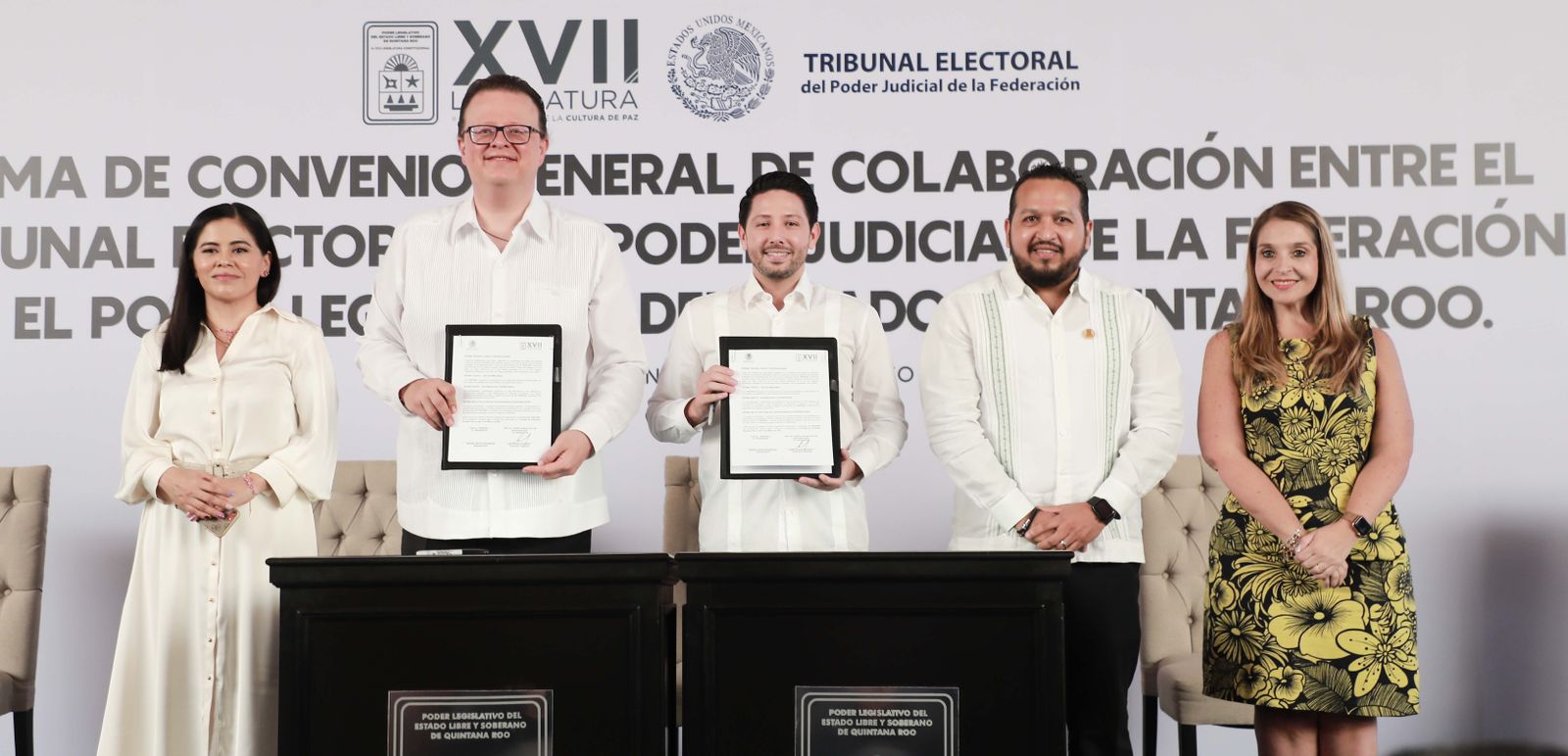 La firma de este convenio estuvo a cargo del diputado Renán Sánchez Tajonar, presidente de la Junta de Gobierno y Coordinación Política (JUGOCOPO), el magistrado de la Sala Superior del Tribunal Electoral del Poder Judicial de la Federación (TEPJF) Felipe de la Mata Pizaña y la Dra. Gabriela Dolores Ruvalcaba García, directora de la Escuela Judicial Electoral.