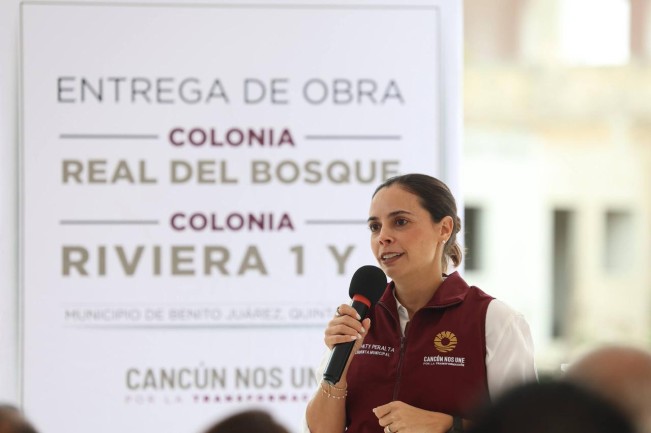 La Presidenta Municipal, Ana Paty Peralta, encabezó la entrega de obras de pavimentación en las colonias Real del Bosque, Riviera 1 y Riviera 2, en la Supermanzana 245, con las que se mejora la movilidad, la seguridad y la calidad de vida de más de 30 mil cancunenses.