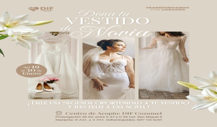 El DIF Cozumel hizo un llamado a todas las mujeres que conserven su vestido de novia en buen estado a sumarse a esta noble causa y ser parte de la historia de amor de una nueva familia.