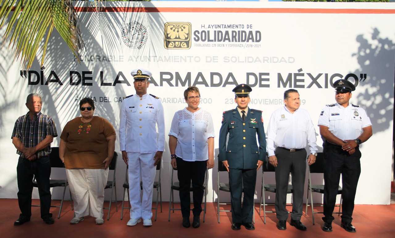 Playa del Carmen.- En el marco del Día de la Armada de México, la presidente municipal de Solidaridad, Laura Beristain Navarrete, reconoció la invaluable labor de los integrantes de las fuerzas armadas, quienes todos los días son muestra viva de lealtad, fuerza y valentía, “valores que representan lo que busca afianzar la cuarta transformación en Solidaridad”.