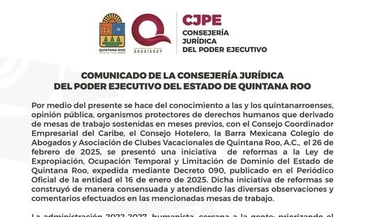Además, dicho comunicado surge, luego de que la Comisión Nacional de Derechos Humanos presentó una demanda de acción de inconstitucionalidad a esta Ley de Expropiación que fue expedida apenas el 16 de enero de 2025.