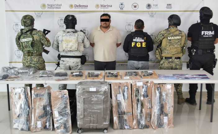 La Fiscalía Federal en la entidad inició la carpeta de investigación, derivado de la recepción de un desglose remitido por la Fiscalía General del Estado de Quintana Roo, mediante el cual puso a disposición del Ministerio Público de la Federación, a una persona, 11 armas de fuego, 35 cargadores y 206 cartuchos.