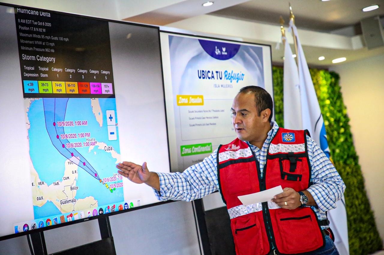 El presidente municipal de Isla Mujeres, Juan Carrillo Soberanis, llamó a las familias isleñas a extremar precauciones ante la inminente llegada del huracán “Delta” de categoría cuatro, a la península de Yucatán, y que sus efectos estarían causando estragos en el municipio isleño.