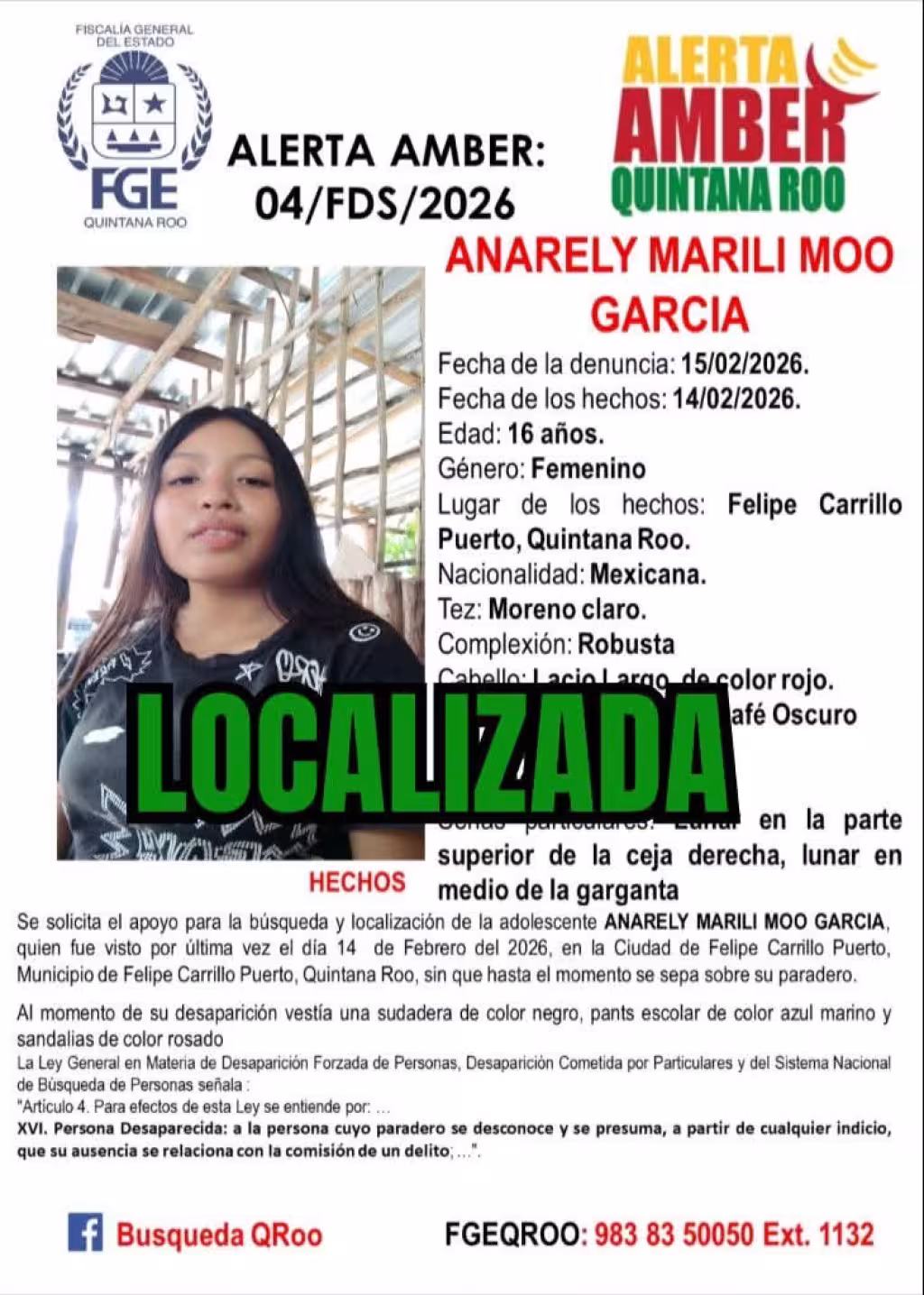 Hasta el momento no se ha dado a conocer a detalle sobre la localización de la menor, lo que si es cierto fue que la ficha de búsqueda, ha sido desactivada por parte de las autoridades de la Fiscalía General del Estado al colocar la leyenda de «Localizada» con letras de color verde.