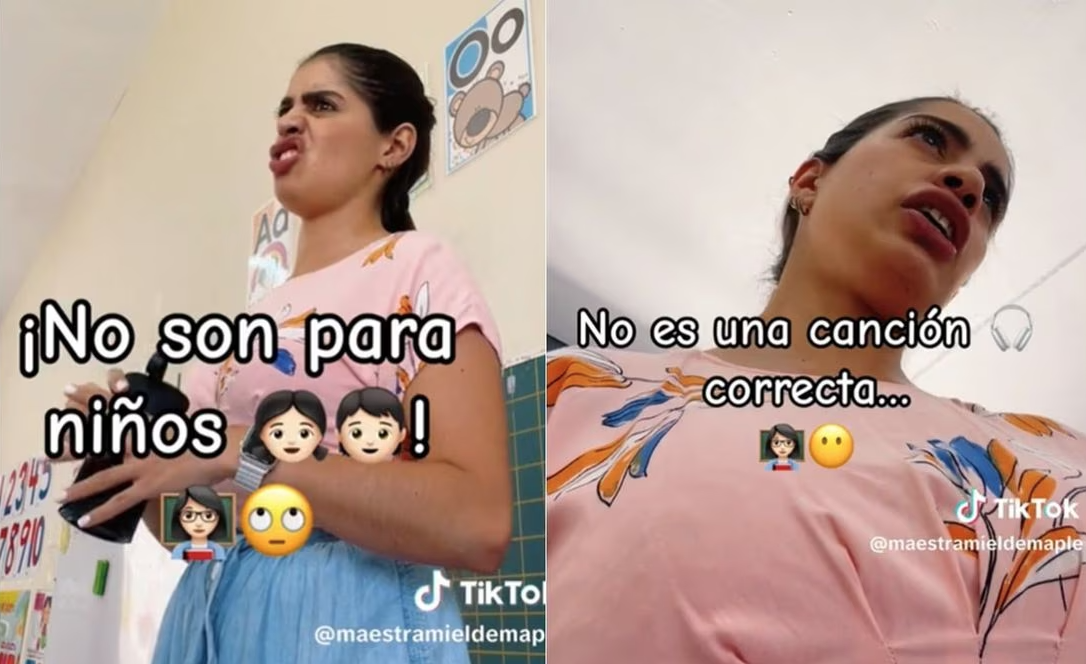 Por medio de TikTok, el usuario @maestramieldemaple compartió un video, donde se aprecia a la maestra negar la canción a sus alumnos.