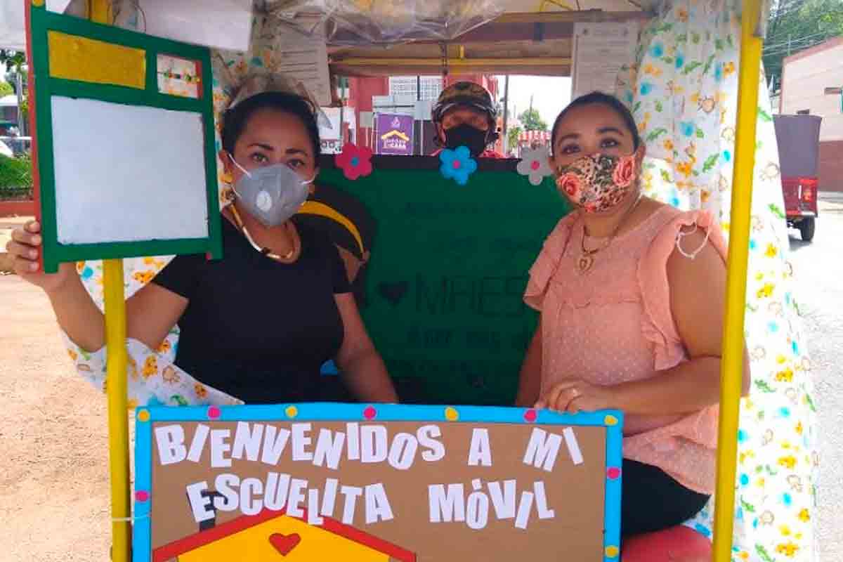 “Voy a tratar de que sea un poco divertido esto y que sea algo diferente para ellos; que se sientan motivados que cuando llegue la quincena van a volver a ver a la maestra, en una especie de salón móvil en un mototaxi que es un medio de transporte que más utilizamos en Ticul, pues verlo decorado de esta forma va a ser algo motivante para ellos”.