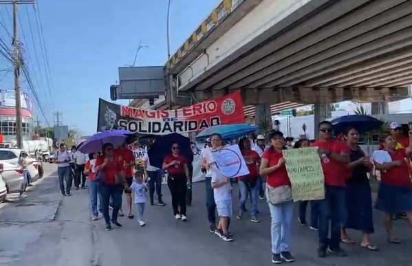 A una semana de que suspendieron las clases, en los diferentes municipios de Quintana Roo, este viernes en Cancún los maestros tomaron avenidas principales de la ciudad, entre Bonampak, Nichupté y Tulum para salir a exigir sus derechos.