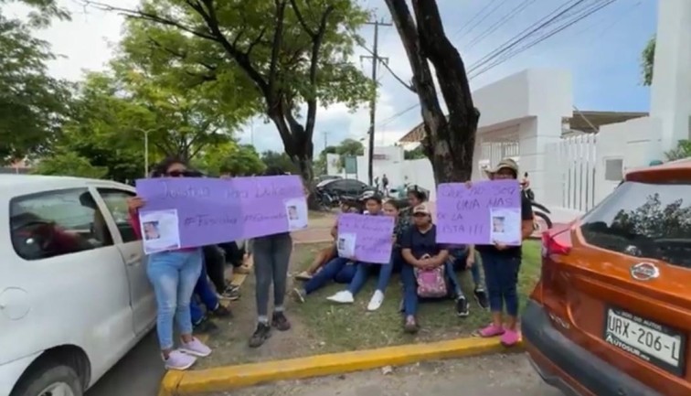 Con pancartas en mano exigen justicia para la joven de 22 años de edad y advierten que no permitirán que dejen libre al presunto feminicida, que de acuerdo a versiones extra oficiales, se había entregado este lunes muy temprano.
