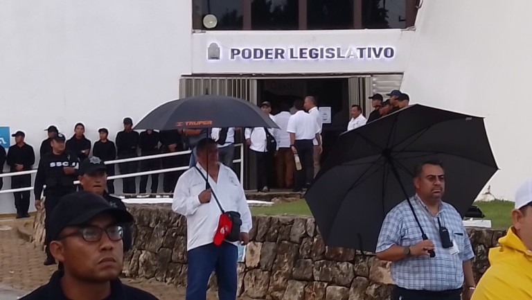 El reciento del Congreso local de Quintana Roo se encuentra rodeado de manifestaciones esta mañana en que tomará protesta la nueva Legislatura.