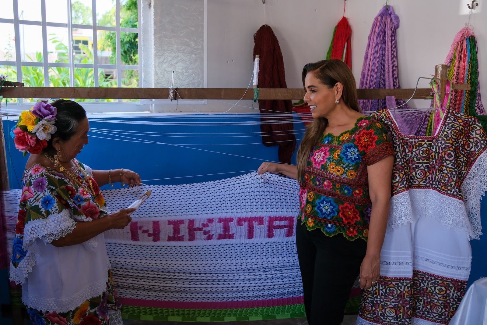 “Estoy en Felipe Carrillo Puerto, con Ramona Puc Cocom, maestra artesana, una de nuestras destacadas urdidoras de hamacas de la zona maya. Ella es una de las miles de artesanas de nuestro estado, como Amanda y Casimira que con sus manos mágicas elaboran piezas bellísimas, únicas”, expresó la Gobernadora.
