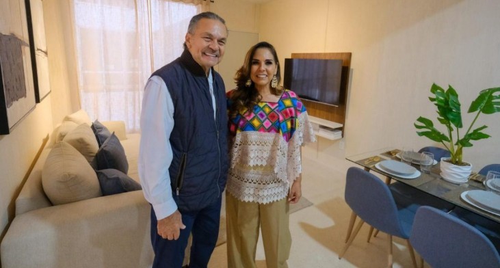 Previo al enlace, Mara Lezama y Octavio Romero recorrieron las viviendas del desarrollo que el INFONAVIT impulsa en Paraíso Maya.