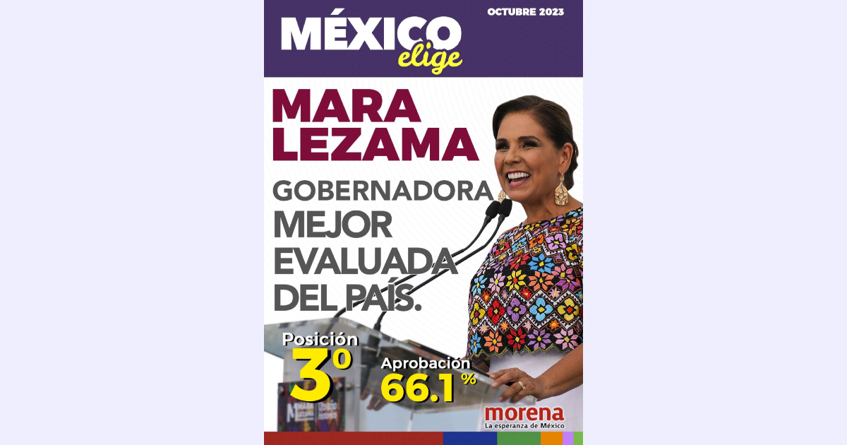 Mara Lezama Espinosa, gobernadora de Quintana Roo, apareció dentro de los 3 primeros mandatarios estatales mexicanos mejor evaluados, de acuerdo con datos recabados por la empresa Investigaciones Digitales.