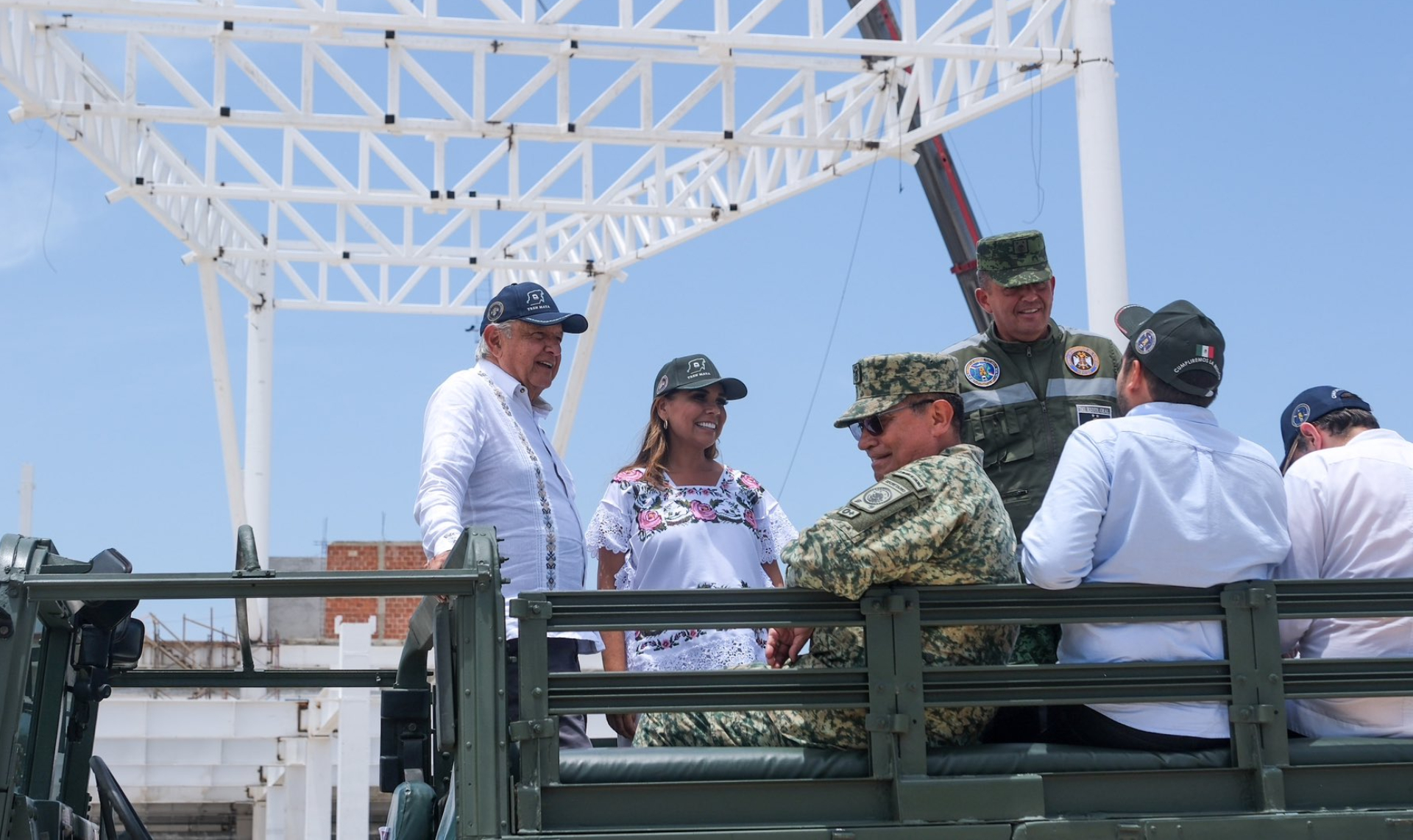 «Acompañamos a nuestro presidente, @lopezobrador_, a supervisar los trabajos del nuevo aeropuerto internacional de #Tulum, Felipe Carrillo Puerto, el cual ya supera el 55% de avance», escribió Lezama Espinosa.