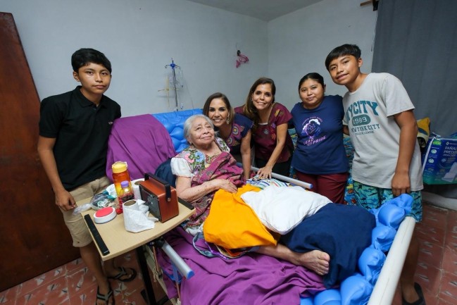 La gobernadora Mara Lezama Espinosa y la presidenta honoraria del Sistema DIF Quintana Roo, Verónica Lezama, visitaron a la abuelita María Magdalena, de 88 años de edad, a quien le entregaron una grúa hidráulica para mejorar sus condiciones de vida.
