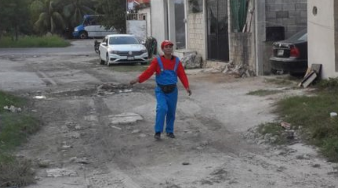 Y es que “Don Mario Bros” parece que salió del mismo videojuego; pues vecinos aprecian como recoge la basura vestido de este entrañable personaje que gusta a grandes ya chicos; mientras realizaba su jornada laboral.