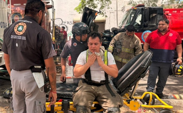 Por más de ocho horas continuas, elementos del Cuerpo de Bomberos y de Protección Civil han trabajado en el control de un incendio registrado en una bodega de bazar hotelero ubicada sobre la avenida Tulum, en la supermanzana 89.