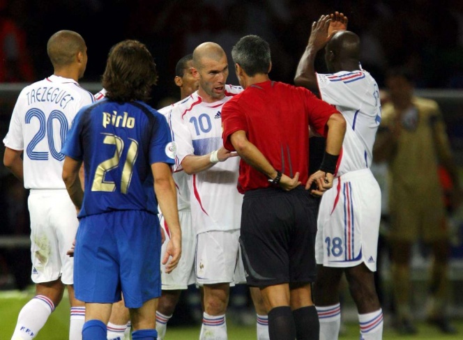 Tuvimos un contacto en el área. Estuvo cerca de hacer un gol en el primer período de tiempo extra y Rino (Gennaro Gattuso) me pidió que lo marcara bien. No quería recibir más regaños. Después del primer choque le pedí disculpas y él reaccionó», indicó Materazzi, quien marcó el gol del empate en ese cotejo.