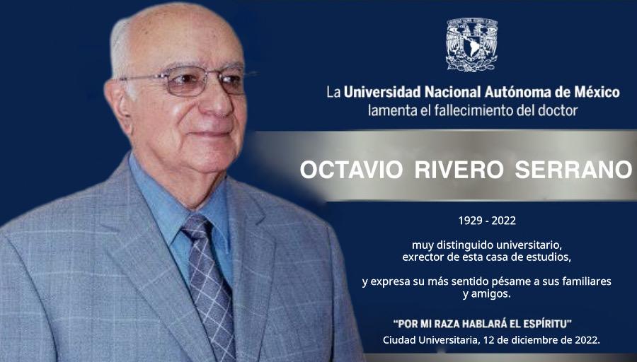 El doctor Octavio Rivero Serrano, exrector de la Universidad Nacional Autónoma de México (UNAM), murió a los 93 años de edad.