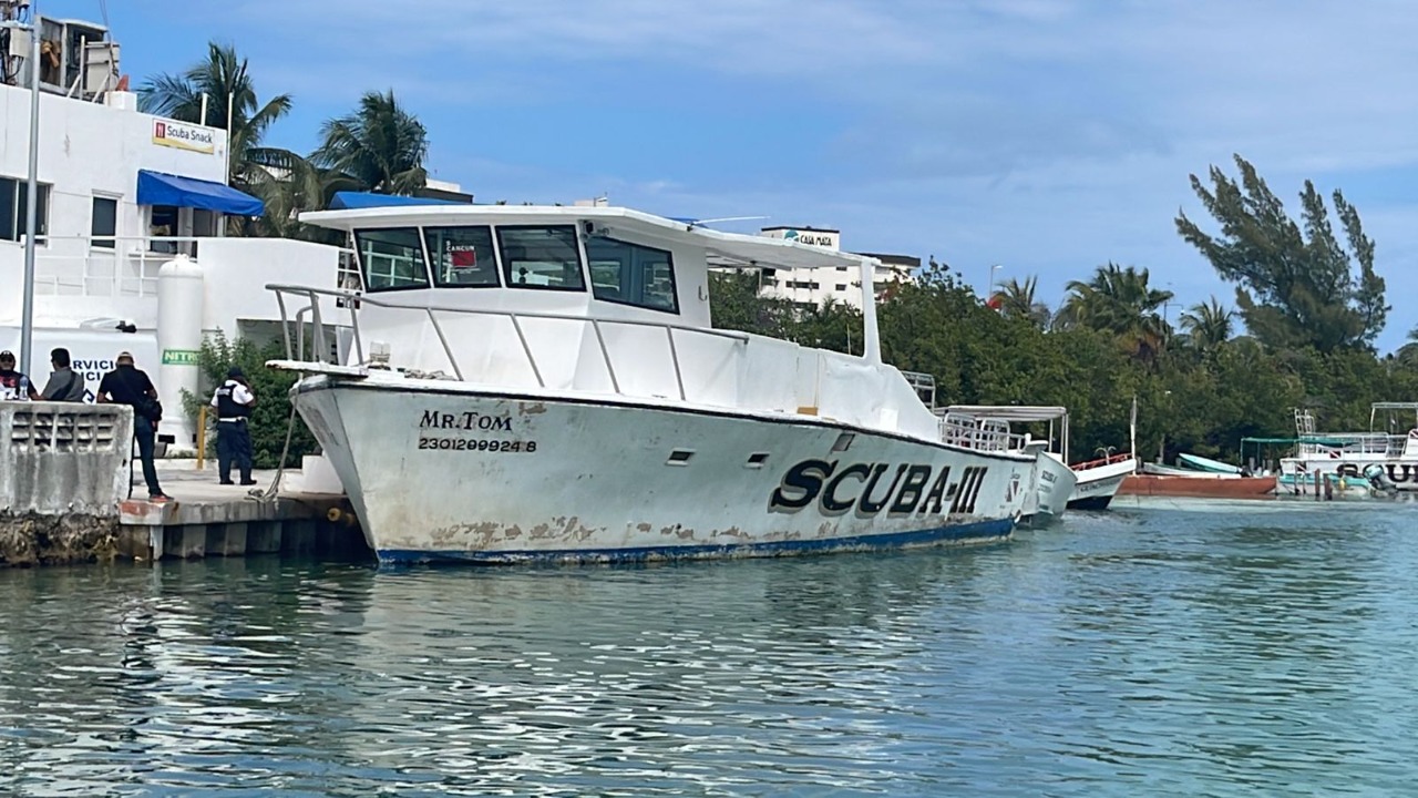 Dichos hechos se reportaron este viernes en la zona donde está hundido el “Cañonero C-55”, ubicado a unas 7.5 millas náuticas de Isla Mujeres cuando ambos extranjeros fueron sorprendidos por la embarcación “Mr. Tom” de la empresa Scuba III con matrícula 23012999248.
