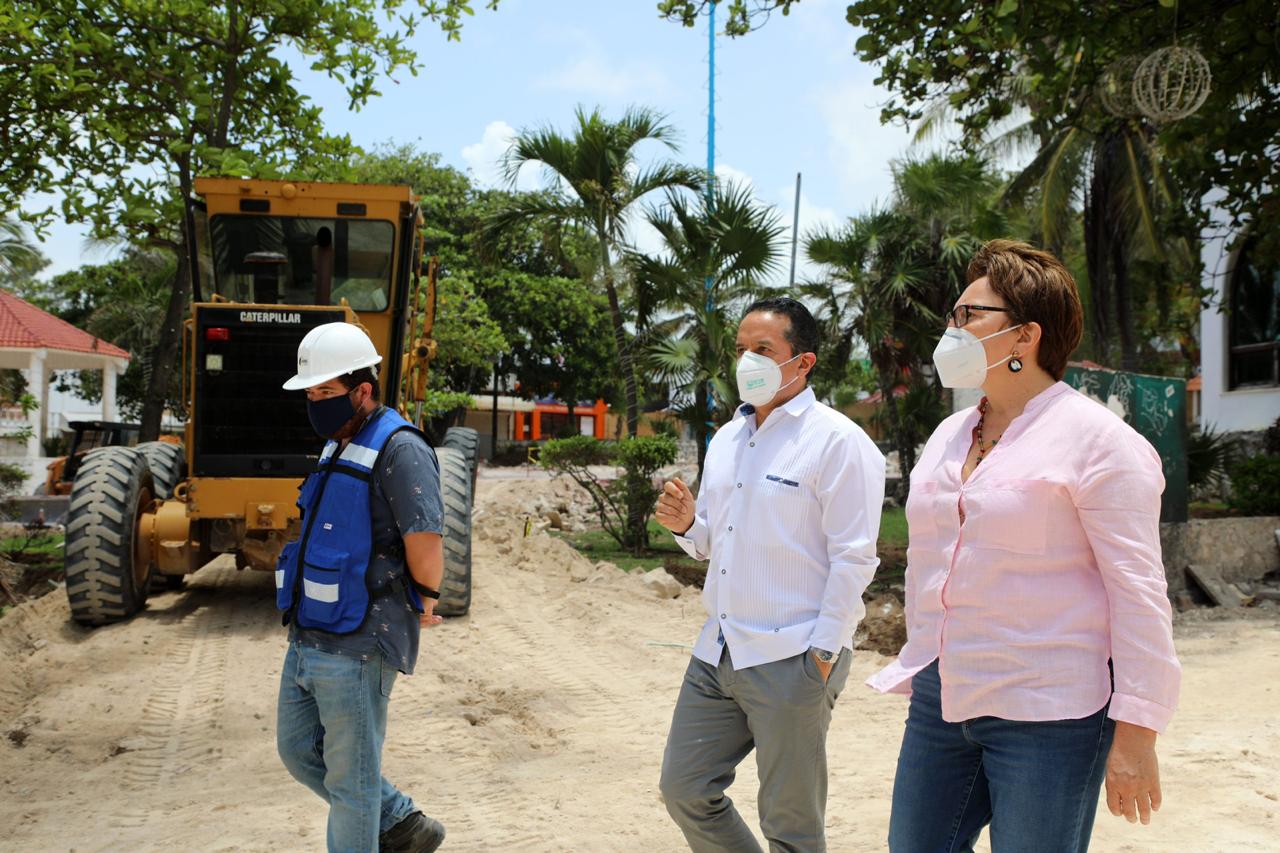 Playa del Carmen.- El gobernador de Quintana Roo, Carlos Joaquín González, y la presidente municipal de Solidaridad, Laura Beristain Navarrete, supervisaron la zona donde están afinando los preparativos para la Rehabilitación de la Quinta Avenida, la Plaza Fundadores y calles aledañas.