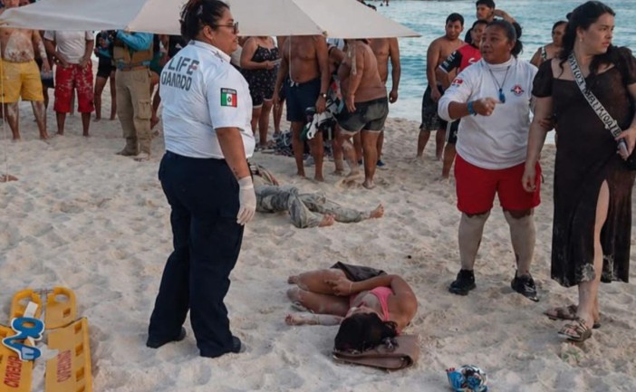 Un accidente ocurrió en playa Gaviota Azul, en la Zona Hotelera de Cancún, cuando una moto acuática salió del mar a alta velocidad y sin control, arrollando a varios bañistas que se encontraban en la orilla.