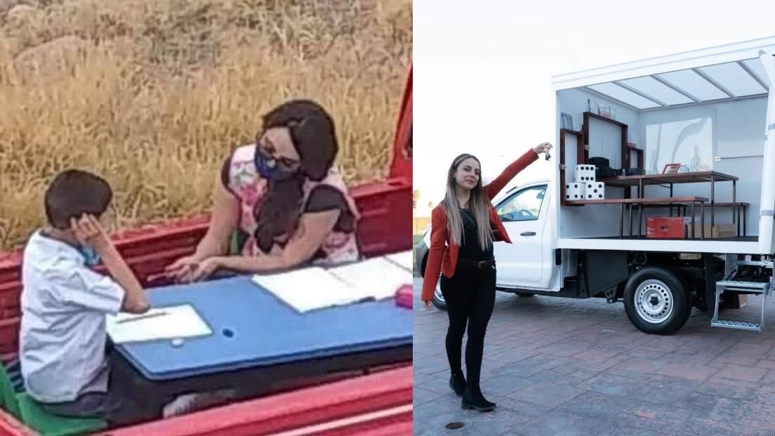 El municipio de Calvillo, en Aguascalientes, cuenta con un gran número de alumnos que, por la pandemia, tuvieron que pausar su educación, hasta que Nallely ideó la solución de dar clases desde la caja de una camioneta.