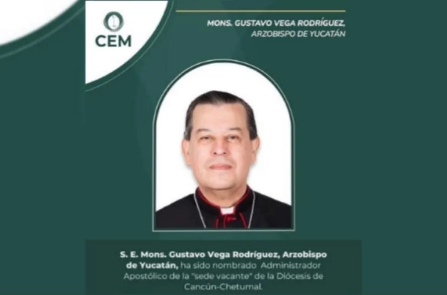 El Papa León XIV nombró a monseñor Gustavo Rodríguez Vega, actual arzobispo de Yucatán, como administrador apostólico de la Diócesis de Cancún-Chetumal, la cual se encuentra en condición de sede vacante.
