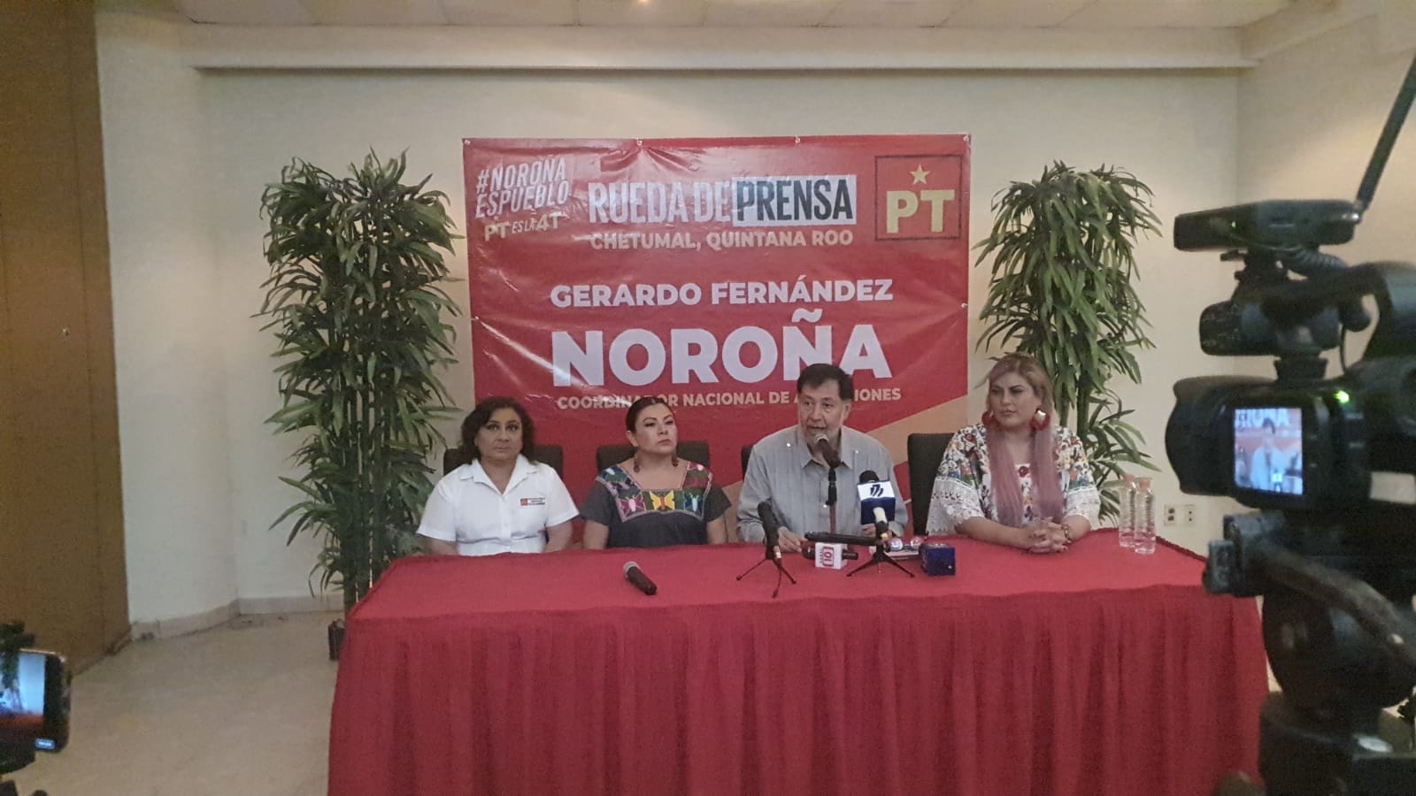 Acompañado de la diputada local petista Alicia Tapia Montejo y de la comisionada nacional del PT en Quintana Roo, Patricia Casados, remarcó que “Noroña es pueblo” y que se ha originado un fenómeno social y político en torno a su persona, en el que ha ido escalando y demostrando su popularidad a pesar de los pronósticos en su contra.