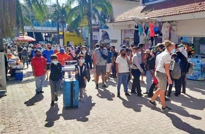 Desde muy temprano, otra vez vuelve a darse una fuerte aglomeración de personas en las inmediaciones de la Terminal Marítima de Playa del Carmen.
