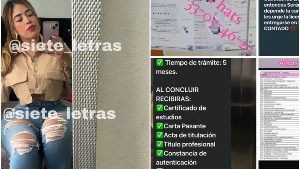 De acuerdo con el material compartido por Antonio Nieto en su cuenta de redes sociales @siete_letras, se anuncian procesos para obtener documentos académicos con tiempos de entrega que, según la propia oferta, pueden ser de hasta cinco meses, dependiendo del tipo de trámite solicitado.